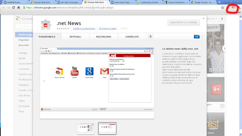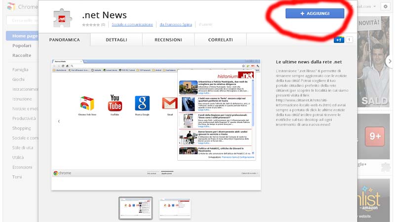Una volta installato il browser sul computer, basterà semplicemente installare l'estensione ".net News" tramite il seguente link: scarica .net News cliccando in alto a destra sul pulsante azzurro Aggiungi e quindi su Installa.