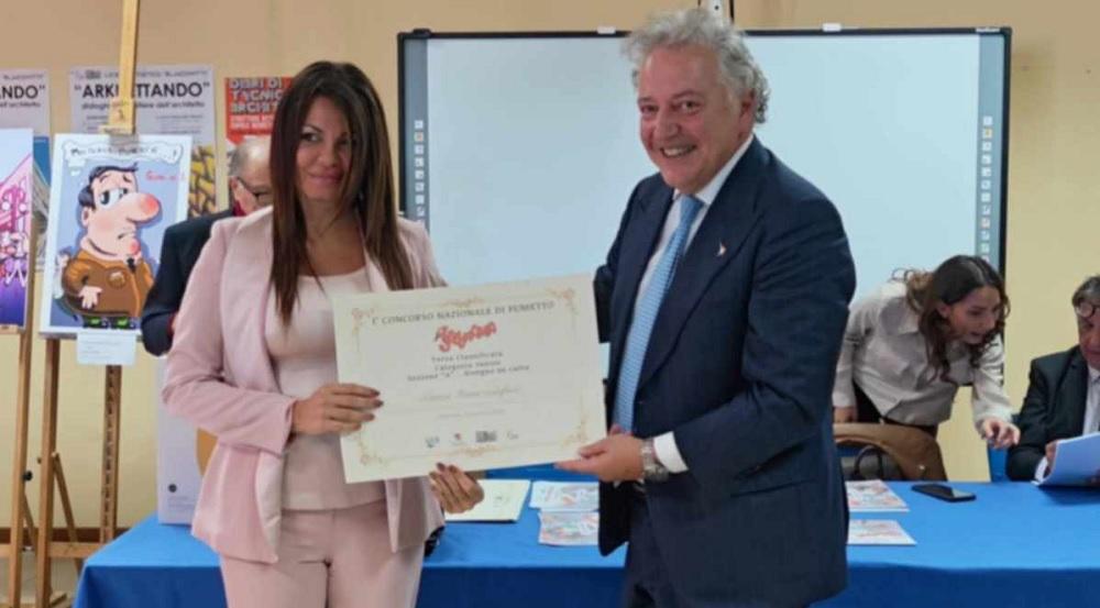 A ritirare i riconoscimenti, in rappresentanza della scuola è stata la professoressa Ylenia Paladino, referente del progetto, per conto delle studentesse Barbara Rodriguez (secondo posto) e Laura Giancristofaro (terzo posto).