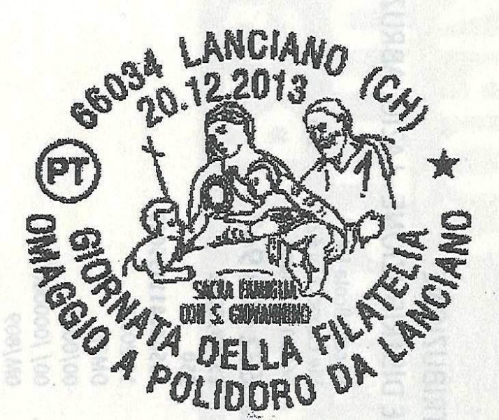 Verrà attivato domani mattina a partire dalle 9 e 30 l’annullo speciale illustrato che le Poste Italiane hanno realizzato in onore del V centenario della nascita di Polidoro (“da Lanzan depentor” come il Nostro si qualifica nel suo testamento), pittore della scuola Veneta del Tiziano. Lanciano quindi in attesa di ricordare degnamente uno dei figli più illustri della sua terra nelle dovute celebrazioni che verranno organizzate nel 2015, tramite la passione e il sempre grande impegno dell’Unione Cultura Filatelica e Numismatica Anxanum si appresta in anticipo a farlo conoscere ed apprezzare, naturalmente nell’ambito della filatelia. Occasione adatta per tale ricorrenza, è la Giornata Nazionale della Filatelia, che a Lanciano sarà celebrata presso i locali della Scuola Media “Umberto I“ in Viale Cappuccini, dove sarà possibile acquistare la cartolina ricordo con il dipinto “Sacra Famiglia con San Giovannino” (olio su tavola, cm. 67x54), conservato in una collezione privata lancianese. L’annullo avrebbe potuto rappresentare una delle numerose opere che ormai l’artista può vantare esposte nei maggiori musei del mondo, ma per l’inizio delle celebrazioni si è pensato bene di illustrarlo con una delle rare opere presenti nella città natale di Polidoro.L’iniziativa assume notevole importanza non solo per quanto appena detto, ma anche dal punto di vista filatelico, poiché la Giornata della Filatelia è stata istituita dall’allora Ministero delle Poste e Telecomunicazioni (all’epoca era denominata “Giornata del Francobollo”) nel lontano 1959. L’edizione di quest’anno comprende, oltre ad una piccola rassegna delle iniziative fin qui assunte dall’Unione Culturale Filatelica “Anxanum” dedicate al Polidoro, l’esposizione di pensieri e riflessioni di molti alunni di 3 classi della “Scuola Media “Umberto 1°” (corredati da francobolli, annulli speciali ed altri documenti postali attinenti agli elaborati degli studenti), che hanno partecipato all’esposizione filatelica svoltasi lo scorso ottobre nei locali del Polo Museale Santo Spirito, per il 70° anniversario della Rivolta della Città di Lanciano ai nazifascisti. Nel corso della manifestazione è in programma la premiazione di tutti gli alunni e che hanno aderito all’iniziativa, ossia le classi 1^ e 3^ C e la 2^ B, i cui lavori sono stati sapientemente coordinati dalle rispettive insegnati. Per l’occasione un piccolo ufficio postale distaccato sarà in funzione, a tutti gli effetti come un vero e proprio ufficio postale, nell’atrio d’ingresso del predetto istituto Scolastico in Viale Cappuccini n°63.