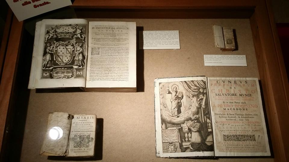 Curatori di quest’esposizione, visitabile fino a domenica 10 maggio presso i locali del convento, sono lo storico Domenico Maria Del Bello e l’archivista Anselmo Martino già organizzatori della mostra “Cinquecentanni” visibile ancora presso la cripta dell’Annunziata. Per meglio conoscere questi autentici tesori d’arte abbiamo scambiato quattro chiacchiere con Domenico Del Bello. “La visita alla mostra prevede due parti - ha commentato Del Bello - la prima a carattere cronologico presenta una serie di testi, non solo sacri, di cui sono senz’altro rilevanti, il seicentesco trattato "Il Cortegiano” scritto da Baldassare Castiglione, un Atlante Universale del 1745 e una rara copia delle opere di Alessandro Manzoni, stampata nel 1839 a Napoli”.