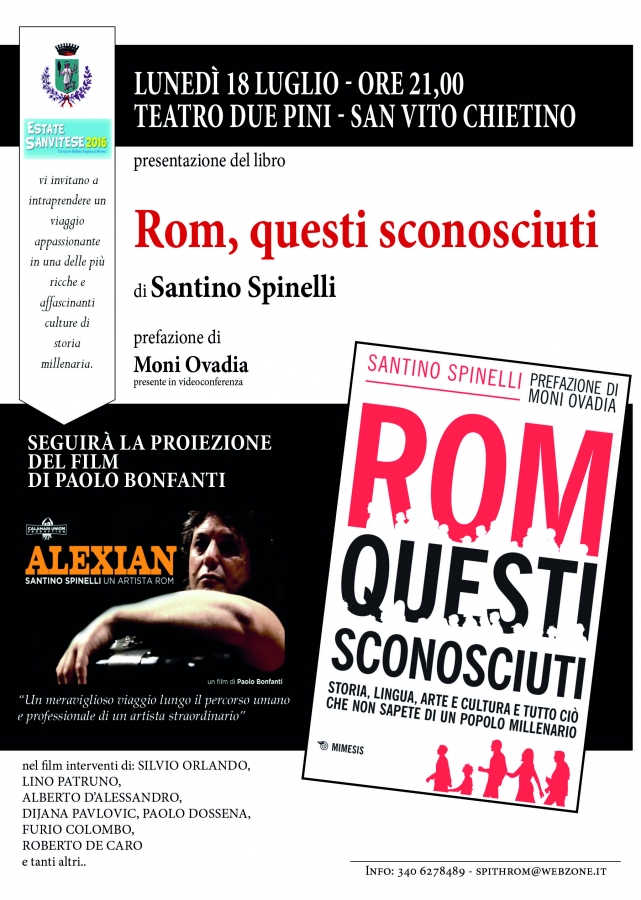 SAN VITO CHIETINO – Lunedì 18 luglio alle 21.00 al Teatro Due Pini a San Vito Chietino un evento che mira a riportare al centro del dibattito interculturale la cultura Rom, a partire dalla valorizzazione e dallo studio dei suoi molteplici aspetti, appuntamento previsto all’interno del programma dell’estate Sanvitese 2016.