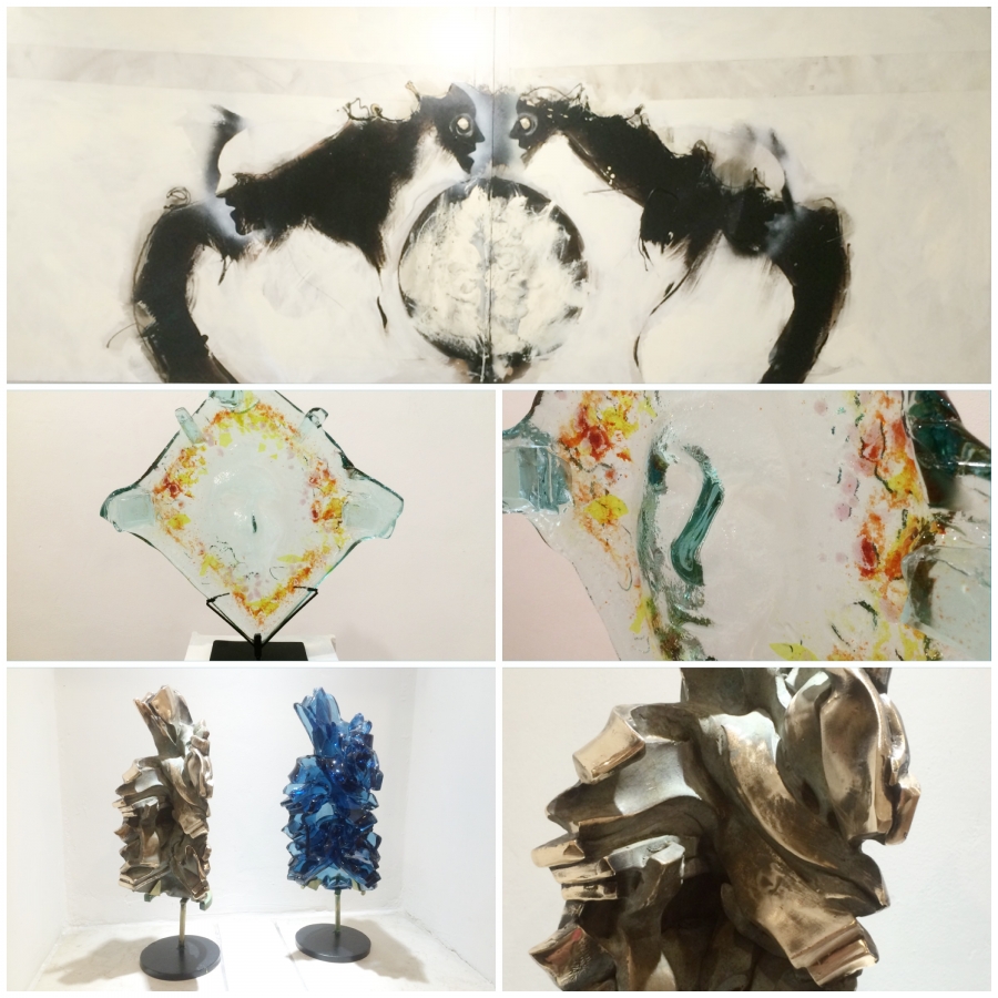 Idee e sensazioni che l’artista trasmette attraverso la materia, che sia il vetro o il bronzo dove emergono anche elementi naturali perfettamente conservati per la combustione, opere che raccontano una visione del mondo femminile che genera, combatte e si prende cura di qualcosa.