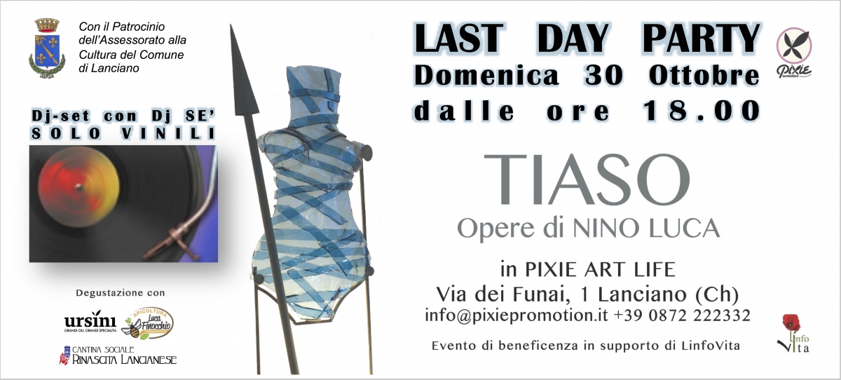 "TIASO" è il nome della personale di Nino Luca, "moderno alchimista dell'arte", allestita dal 30 settembre al 30 ottobre 2016 nelle due sale dello spazio Pixie Art Life nel centro storico di Lanciano (Ch) in via dei Funai 1. La mostra, organizzata e curata da Raffaella Tenaglia, con il patrocinio dell'Assessorato alla Cultura del Comune di Lanciano, si propone come momento di osservazione e riflessione sull'archetipo femminile, sui suoi possibili elementi simbolici e sullo spirito carismatico della donna nella società , attraverso l'immaginario plastico e primitivo dell'artista di origine messinese, lancianese d'adozione, Nino Luca.