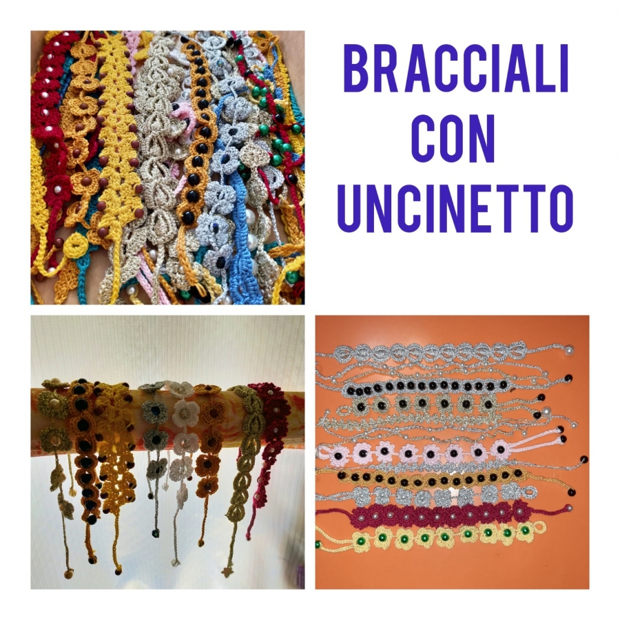 • cappelli, sciarpe, guanti e borse porta/ documenti: cappelli di lana e filo, sciarpe, tutti lavorati ad uncinetto ed ai ferri, sia per uomo che per donna, borse di stoffa porta oggetti, cucite a macchina, per essere utilizzate dai pazienti in reparto;