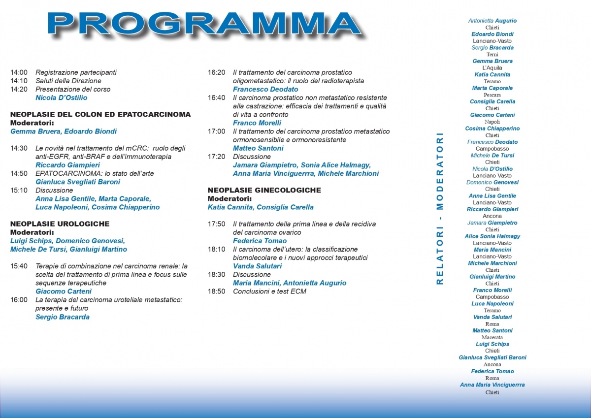 "Verso l’oncologia di precisione nel trattamento delle neoplasie uro-ginecologiche, del colon e del fegato”.