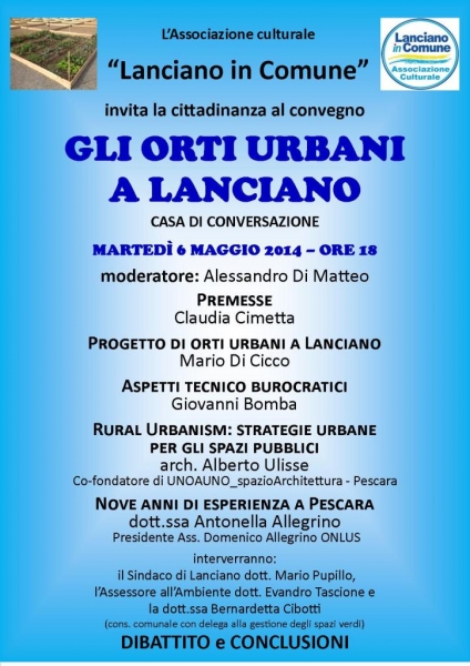 Si è svolto ieri il convegno promosso dall’Associazione Lanciano in Comune sul progetto “Orti urbani a Lanciano” come occasione di riqualificazione del territorio e di condivisione del bene comune.