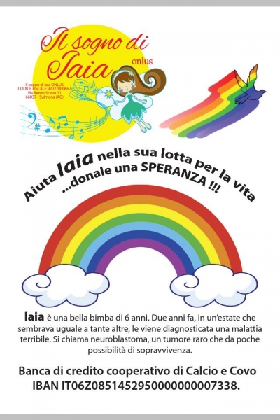 Iaia ha combattuto con le unghie e i denti, come una principessa coraggiosa. E non ha alcuna voglia di mollare, lei come i suoi genitori e i tanti amici che hanno mostrato da subito il loro affetto. Pochi mesi fa l'esempio di Lorenzo Costantini ha dimostrato quali incredibili risultati si possano ottenere unendo le forze. Come per Lorenzo anche per Iaia sono partite spontaneamnete diverse iniziative di solidarietà in tutta la regione e non solo. Molti altri eventi sono in programma, uno in particolare anche a Lanciano, del quale presto vi daremo i dettagli.