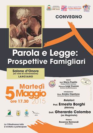 Il convegno, a cui parteciperanno il biblista Ernesto Borghi e l’ex magistrato Gherardo Colombo, famoso per le inchieste sulla Loggia P2, il delitto Giorgio Ambrosoli e Mani Pulite, verterà sul tema “parola e legge: prospettive familiari”.