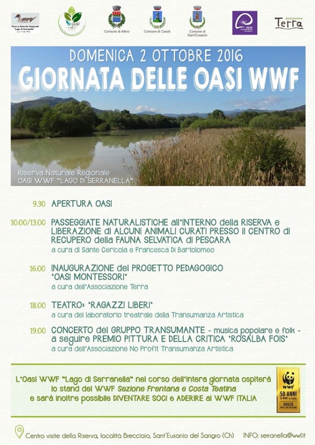 SANT’EUSANIO DEL SANGRO – Anche l’Oasi WWF Lago di Serranella protagonista della Giornata nazionale delle Oasi promossa dal WWF e finalizzata alla scoperta di tutti quei luoghi dello stivale in cui, ogni giorno, i volontari si dedicano alle attività di tutela delle specie animali e vegetali esistenti lavorando per offrire un progetto di valorizzazione.