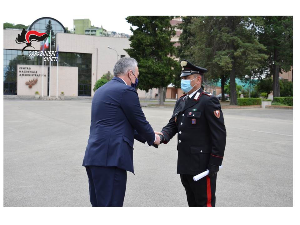 Questa mattina, nel corso della cerimonia, alla presenza di S.E. il Prefetto di Chieti Armando Forgione, e presieduta dal Gen. B. Carlo Cerrina, Comandante della Legione Carabinieri Abruzzo e Molise, dal Gen. B. Riccardo Piermarini, Comandante del Centro Nazionale Amministrativo dell’Arma dei Carabinieri e dal Gen. B. Giampiero Costantini, Comandante della Legione Carabinieri “Forestale” Abruzzo e Molise, sono stati conferiti alcuni riconoscimenti, ai militari che si sono particolarmente distinti in attività d’istituto o liberi dal servizio.