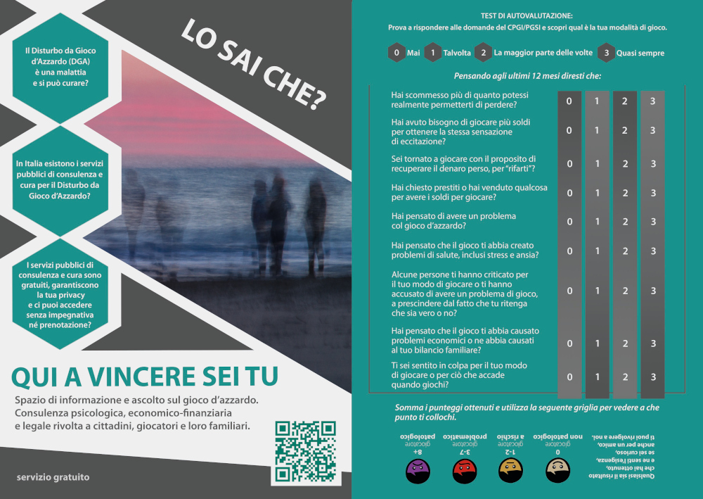 La campagna, alla quale ha contribuito per la parte creativa Cortò Factory Image, è stata strutturata secondo le logiche del marketing con l’obiettivo di raggiungere un pubblico ampio, con una finalità : mostrare che una via d’uscita dalla ludopatia c’è.