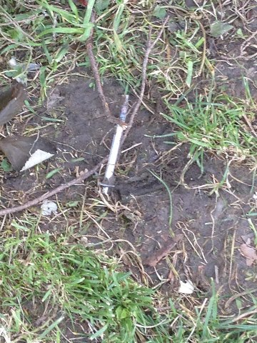 Grazie alla segnalzione di un solerte cittadino quella che vi mostriamo è proprio la foto di una siringa abbandonata proprio li dove nostro figlio potrebbe rincorrere un pallone o dove un cittadino potrebbe inciampare e caderci sopra. Lo scorso anno fu il Sindaco Pupillo di tasca sua a far ripulire l'area e quest'anno? Parliamo di siringhe infette il luogo andrebbe bonificato da ditte specializzate il rischio potrebbe correrlo anche il giardinieri sprovvisto della adeguata attrezzatura e poi non sarà mica l'unica....quante ve ne saranno?