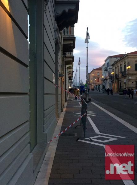 LANCIANO - Da ieri, parte di un marciapiede di corso Trento e Trieste è stato transennato a causa della caduta di intonaco dalla facciata di un palazzo.