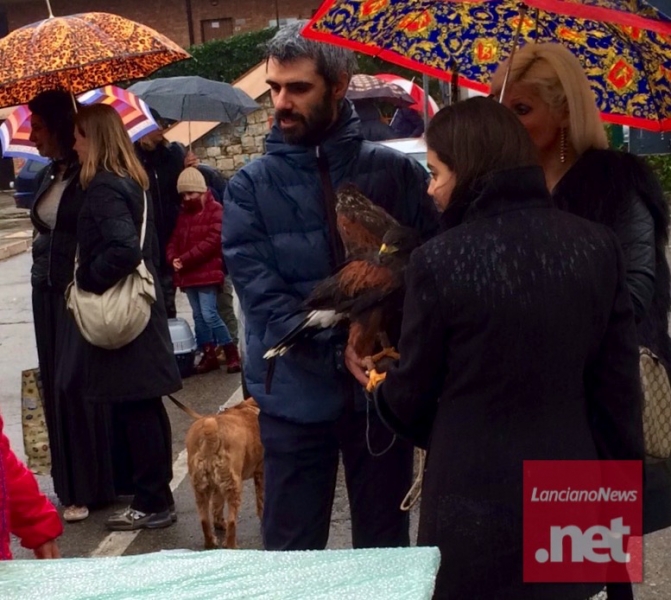 Moltissimi i cani, di ogni taglia, razza e colore che si sono assiepati di fronte la chiesa, insieme ad un asinello e due falchi, attendendo in modo più o meno composto l’arrivo del parrocco per la benedizione.