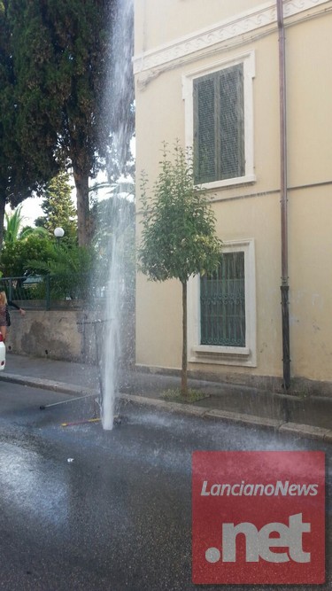 LANCIANO - Spettacolo insolito ieri alle 19.30 nei pressi della Sangritana: un'improvvisa fontana d'acqua si è alzata dall'asfalto tra lo stupore dei passanti. La causa è stata una rottura alla conduttura idrica, che ha fatto schizzare via un tombino e che ha tenuto i tecnici della Sasi sul posto per alcune ore.