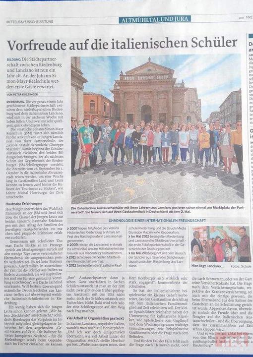 “Abbiamo preparato i nostri ragazzi a confrontarsi con una cultura diversa, - ci dicono le insegnanti - ad approcciarsi con un’ottica di curiosità, spirito di adattamento e accettazione dell’altro. Sarà senz’altro occasione per allargare i propri confini e poter toccare con mano come il mondo non finisca alle porte di Lanciano”. E a Riedenburg proprio tutti attendono i nostri piccoli lancianesi, persino i giornali (come nella foto, ndr) e l’amministrazione comunale ha addirittura già acquistato i biglietti per i mezzi pubblici per far muovere gli alunni in città.