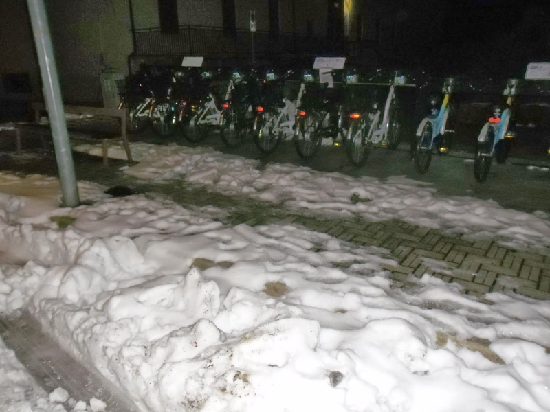 "La breve esperienza del bike-sharing a Lanciano volge malinconicamente al termine, sepolta dalla neve e dalle intemperie di ogni tipo ma soprattutto dall'incuria dell'amministrazione comunale. Fin dal giorno stesso della sua inaugurazione, nel maggio di quest'anno, avevamo fatto una richiesta tanto logica da sembrare perfino superflua, ossia quella di installare al più presto delle pensiline per offrire un minimo riparo ai mezzi nuovi di zecca: