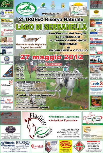 E’ il programma allestito per domenica 27 maggio dal circolo ippico La Mandrakata di Massimo Verna, in collaborazione con l’associazione “Il Podere 3C La Sorgente”, in occasione del secondo Trofeo riserva naturale “Oasi di Serranella”. Si tratta di una competizione ippica che prevede tre percorsi – 90, 60 e 30 chilometri circa – valevole per il Campionato regionale e aperta alle classiche categorie Cen B, Cen A e debuttanti.