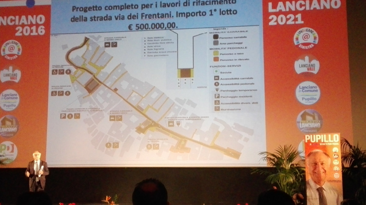 Un confronto con le vicende dell’amministrazione precedente, e verso le quali Pupillo ci tiene a ribadire la totale estraneità, passando in rassegna opere e progetti realizzati nel corso degli anni, con l’analisi dei costi e dell’utilizzo dei finanziamenti ricevuti dalla Regione Abruzzo.