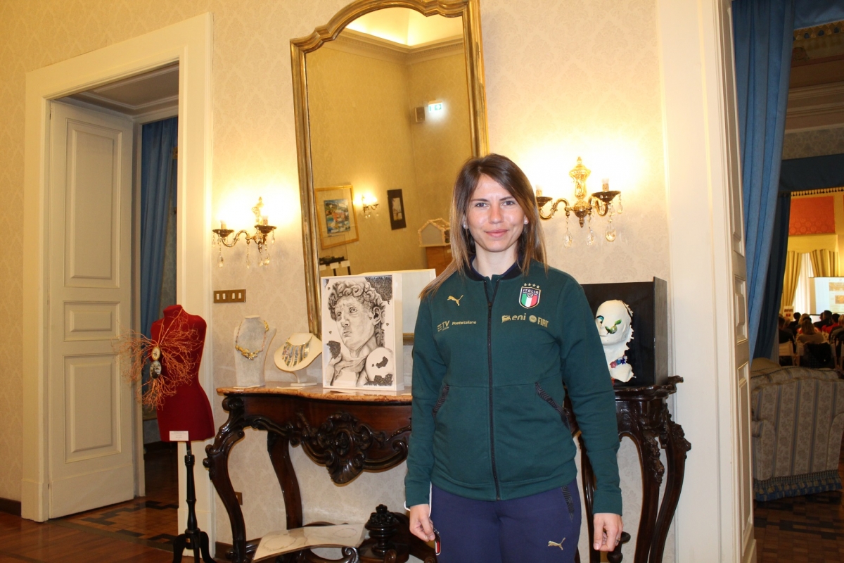 A organizzare il concorso letterario e fotografico dedicato agli studenti delle scuole superiori e gli eventi culturali e sportivi legati al Premio, l’associazione “Sport&Valori”, ideata da Luigi Milozzi e Orlando D’Angelo, con la sua squadra di testimonial, tutti sportivi di livello nazionale internazionale, molti dei quali presenti oggi al grande opening dell’evento: Antonio Tartaglia (nella foto sopra), oro olimpico nel Bob alle Olimpiadi invernali del ’98, il campione di ciclismo paralimpico Pierpaolo Addesi, il pugile Emanuele Cavallucci, gli ex calciatori Luciano Miani, Antonio Martorella e Gianluca Colonnello (l’ex difensore di Pescara, Lecce e Perugia ha realizzato il disegno diventato logo ufficiale del Premio), l’allenatrice di calcio femminile Alessandra Gabrielli, la giocatrice di futsal Aida Xhaxho. Tanti altri, come il campione del mondo di bocce Gianluca Formicone, o l’ex portiere della Nazionale e dirigente della Roma Morgan De Sanctis, non erano presenti in sala ma sono altre eccellenze che hanno deciso di affiancare gli organizzatori del Premio.