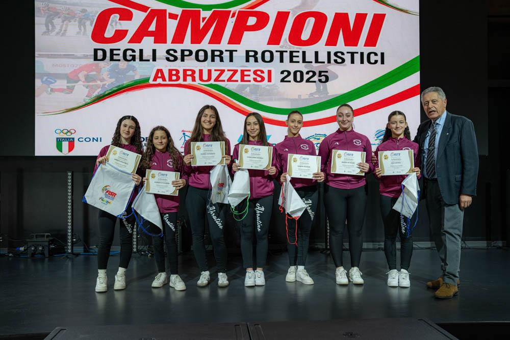 A ricevere il premio gli atleti e le società sportive che nel corso del 2025 si sono distinti in ambito internazionale, italiano e regionale, tra i quali: la già campionessa europea e mondiale, la pescarese Asja Varani, oro 2025 nel pattinaggio corsa, ai Campionati Italiani Indoor di Pescara e a agli Assoluti su pista di Trapani; Anthony Russi, medaglia d’argento junior ai Campionati Italiani di Pattinaggio Artistico di Novara, convocato poi ai Mondiali cinesi 2025; l’avezzanese Edda Paluzzi, oro a Pescara, agli indoor di pattinaggio corsa dello scorso anno e argento a Trapani, ai Campionati di corsa su pista; Riccardo Fontana,argento nel Pattinaggio artistico ai Mondiali cinesi 2025 nei Gruppi Sincro; Irene Di Egidio, argento nella solo dance, ai Campionati di pattinaggio artistico di Piancavallo; Alessio Clementoni, medaglia d’oro a Trapani ai Campionati 2025, nella 10000 m. corsa a eliminazione su pista; l’atleta del CPGA Aquila, Federica Di Natale, bronzo agli italiani corsa di Cantù e al campionato Maratona di Napoli.