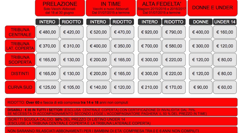Per tutti i vecchi abbonati, sarà possibile sottoscrivere un nuovo abbonamento da domani, 18 giugno, con diritto di prelazione, fino al 30 giugno. Dal 1’ luglio, invece, inizierà un doppio canale di vendita per tutti: prime time e “alta fedeltà”.