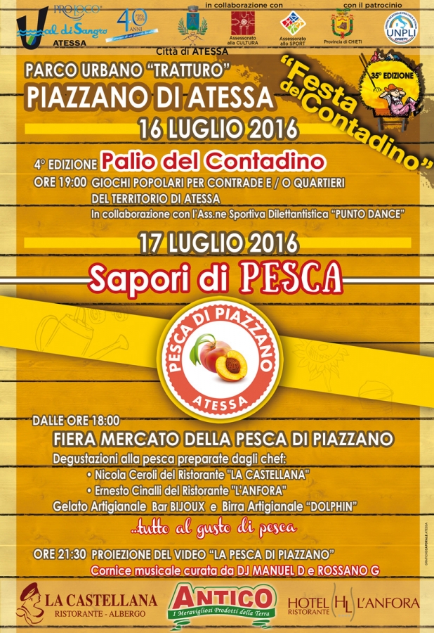 Un weekend che è parte della tradizionale Festa del Contadino che ogni anno si ripete ad Atessa, all’insegna della riscoperta delle tradizioni del mondo contadino, sabato infatti anche il Palio con i giochi popolari tra le contrade e i quartieri di Atessa.