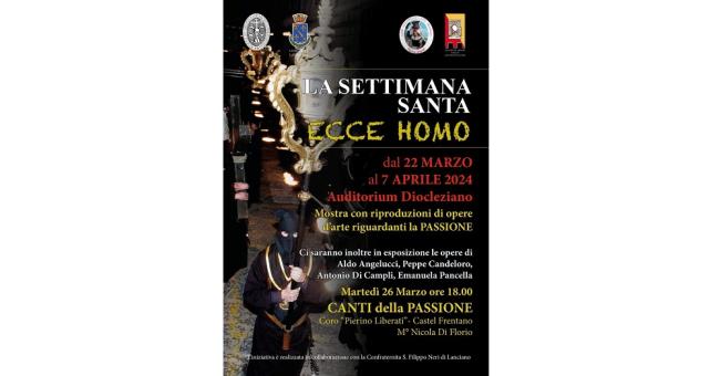 L'associazione artistico - culturale "Amici di Lancianovecchia" in collaborazione con il Comune di Lanciano e l'arciconfraternita "Morte e Orazione" San Filippo Neri, organizza nell'auditorium Diocleziano di Lanciano la mostra dal titolo "La Settimana Santa Ecce Homo".