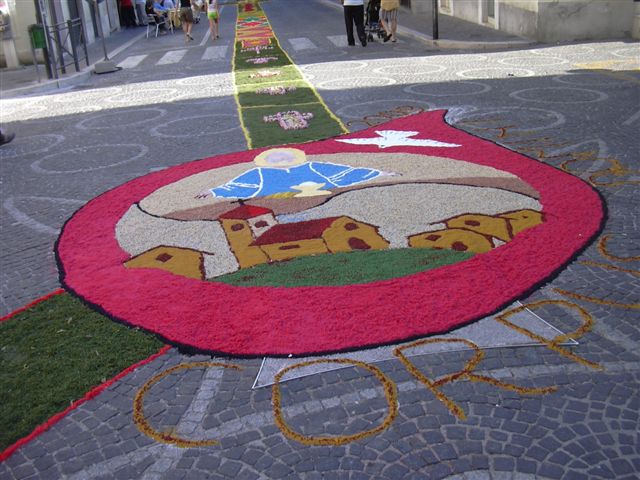 Vengono riprodotti immagini sacre, simboli e soggetti religiosi, ma anche semplici disegni geometrici, tutti di gran pregio e fattura, per i quali vengono impiegati migliaia di petali di fiori di campo, come ginestre, papaveri e margherite, ma anche di rose, garofani, gigli e altre specie floreali. Una scenografia multicolore di forte impatto visivo che fa da sfondo al passaggio della solenne processione. Quel lungo, interminabile tappeto colorato colpisce l’occhio, ma anche il cuore. La bellezza estetica si esalta infatti col valore religioso che quei quadri fioriti, nati dalla fede, esprimono.