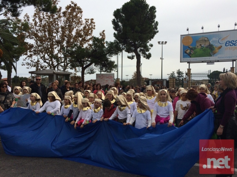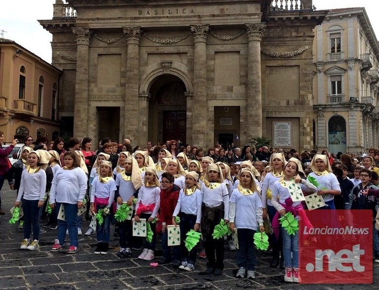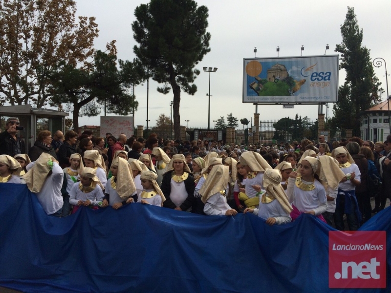 LANCIANO - Corso Trento e Trieste, questa mattina, si è riempito di colori, musiche e soprattutto bambini. E sono stati i bambini dell’istituto comprensivo D’Annunzio, in più di 400, dalla scuola materna fino alle scuole medie ad animare il centro di Lanciano con il flash mob “Aida: marcia trionfale!”. Sono partiti poco più tardi delle 11, dal piazzale della stazione, percorrendo tutto corso Trento e Trieste, fino ad arrivare in piazza Plebiscito, sulle note della famosa opera di Giuseppe Verdi, ripercorrendo tutte le tappe dell’amore di Aida per il guerriero Radamès e della guerra tra esercito etiope ed egiziano. Hanno simulato lo scontro tra i due Paesi e l’ingresso trionfale dell’Egitto dopo la vittoria, fino ad arrivare in piazza e concludere il flash mob cantando tutti insieme.