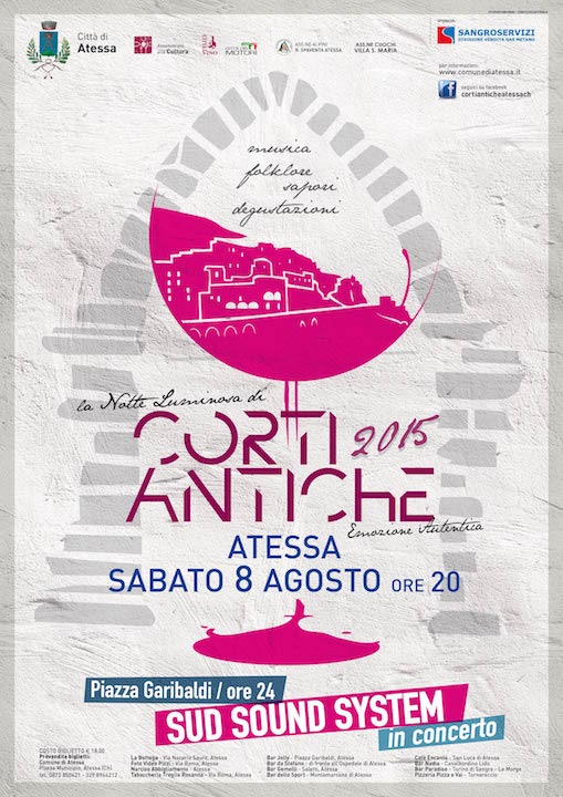 L’evento, organizzato dall’amministrazione aomunale di Atessa, quest’anno vedrà protagonista il colore per la Notte Luminosa 2015, un itinerario non soltanto del gusto ma anche di storia, intrattenimento, artigianato locale e musica. La postazione di partenza sarà in piazza Oberdan, dopo la consegna dei calici seguirà il percorso all’interno delle vie del centro per concludersi in piazza Garibaldi con il concerto della band salentina Sud Sound System per un misto di raggae, raggamuffin e tradizione.