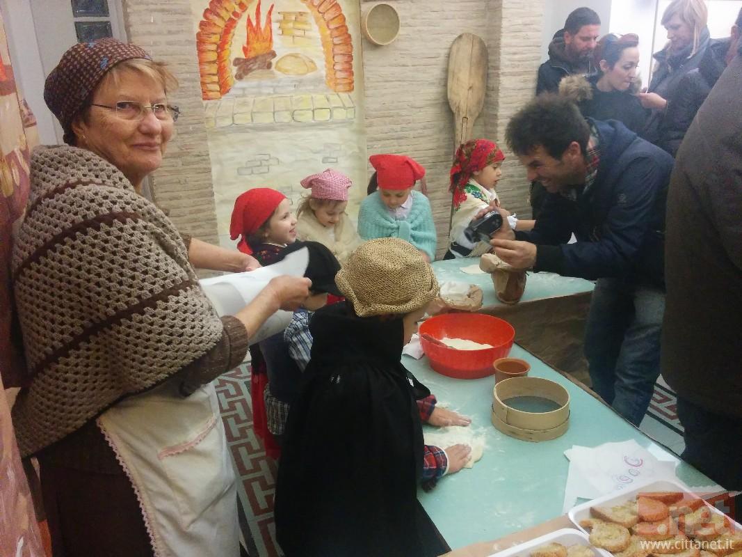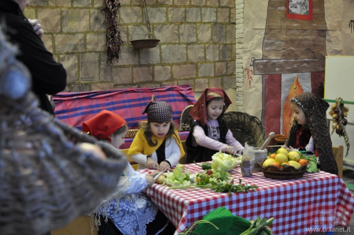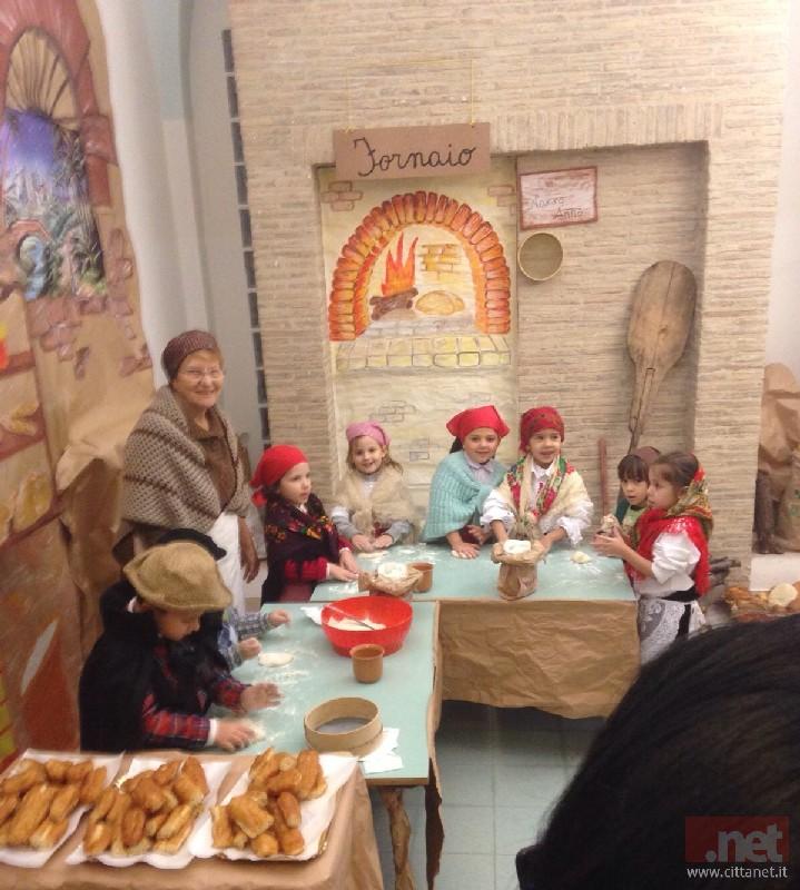 Più di 60 bambini vestiti da pastorelli e contadinelle hanno accolto genitori, nonni e zii nel cortile antistante la scuola, dando vita ai diversi mestieri del passato, giocando con l’argilla, impastando il pane e cardando la lana. Ad aiutarli non solo molti nonni volenterosi ma anche responsabili e soci dell’Anfass di Lanciano.
