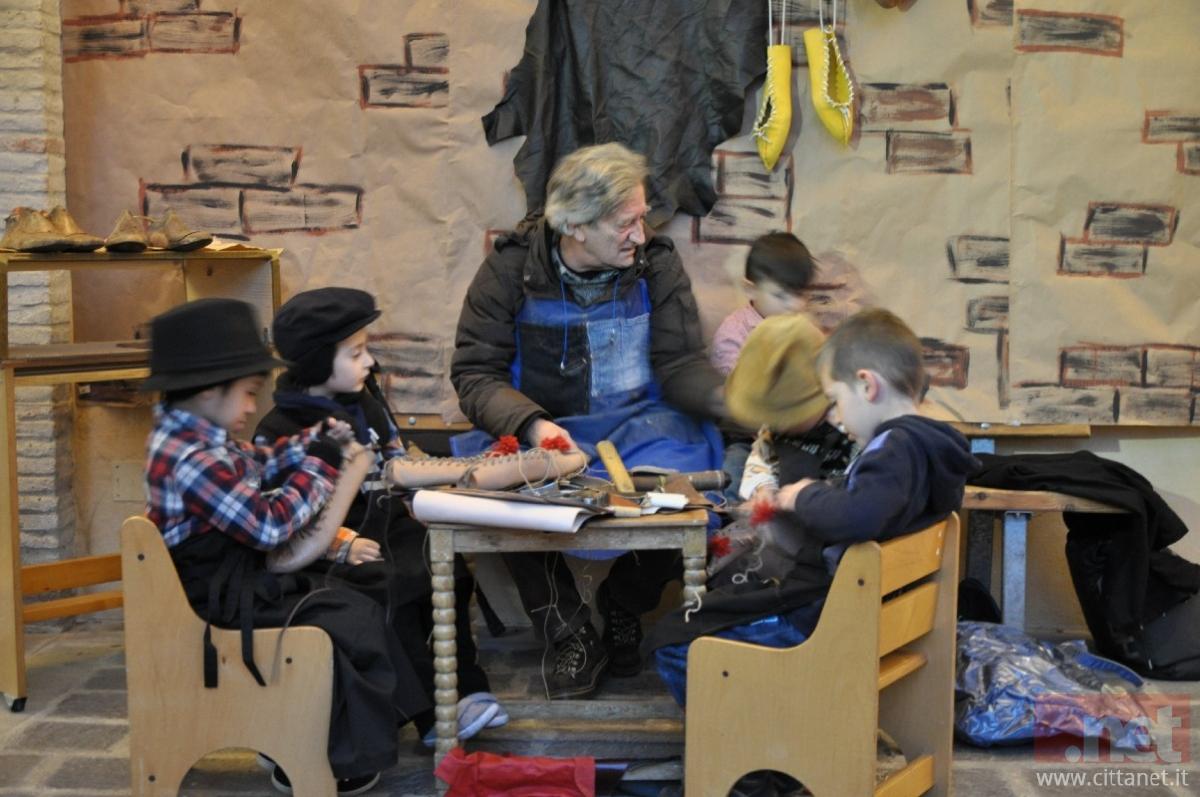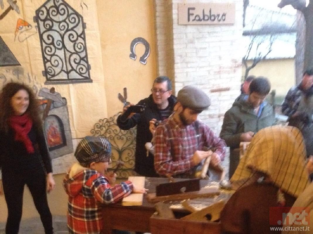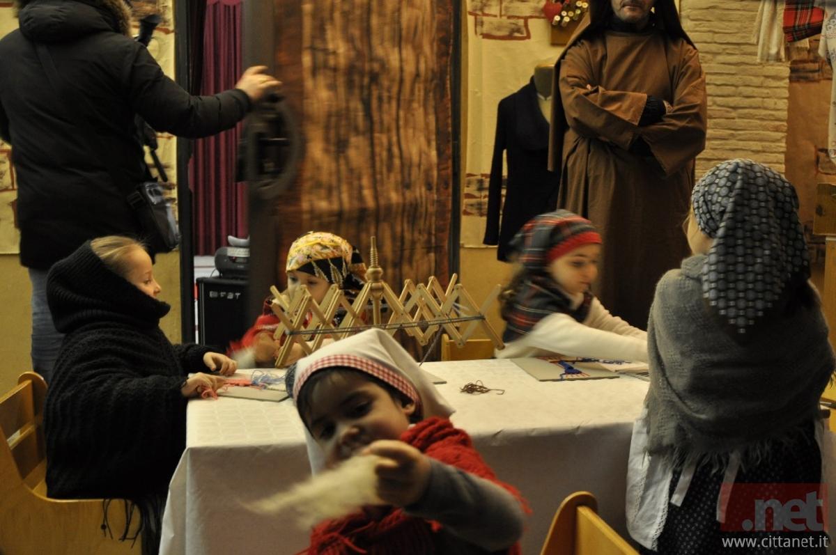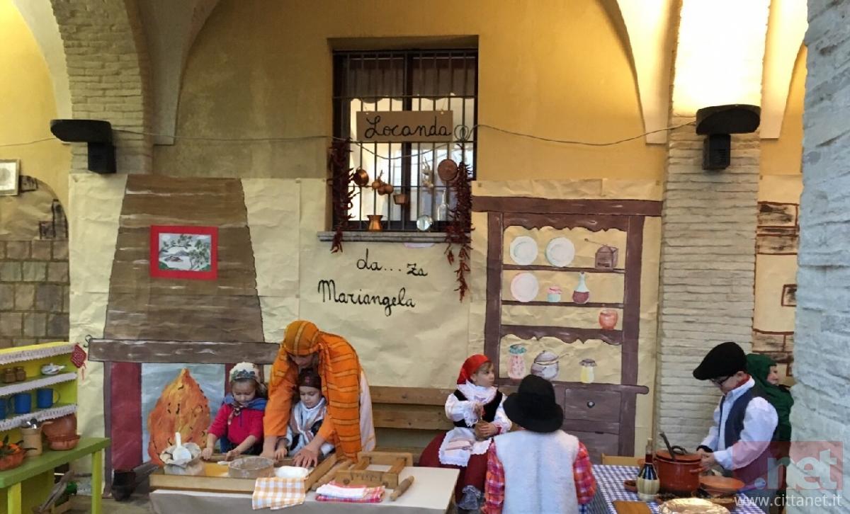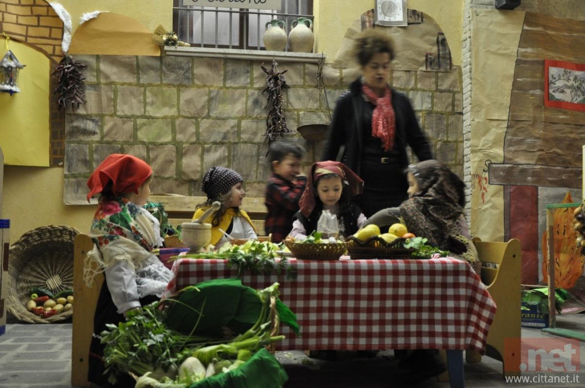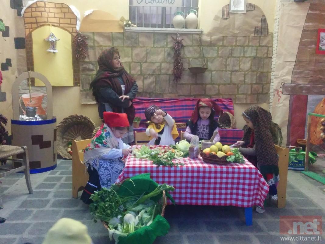 LANCIANO – La bottega dell’ortolano, quella della magliaia, del vasaio, del falegname, del fornaio: non mancava proprio niente nel presepe vivente inscenato da tre classi della Scuola dell’Infanzia Maria Vittoria per festeggiare il Natale di quest’anno.