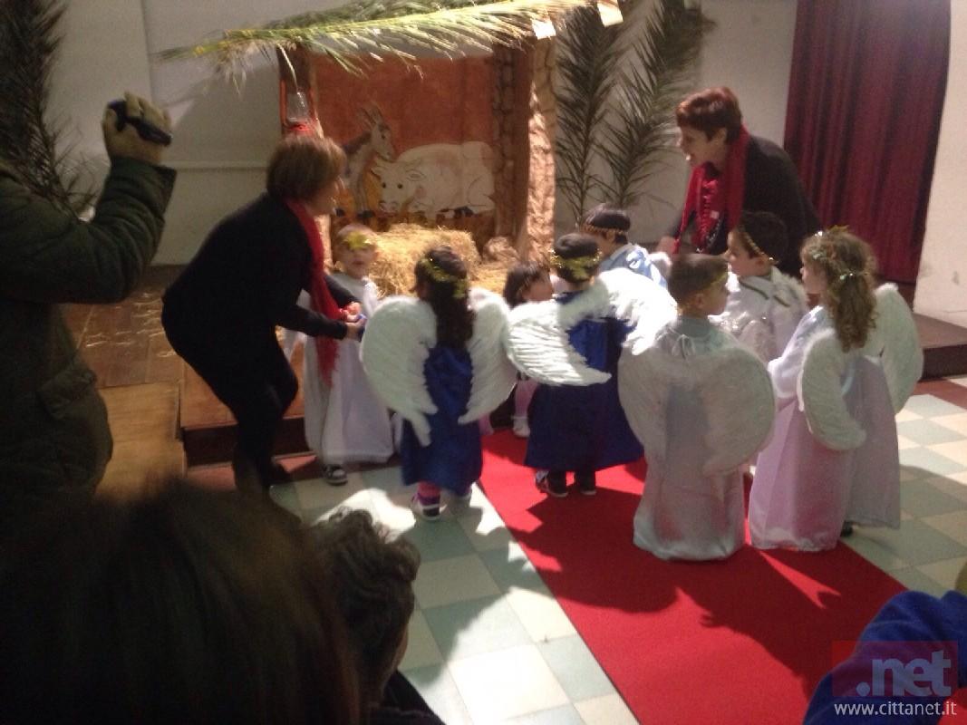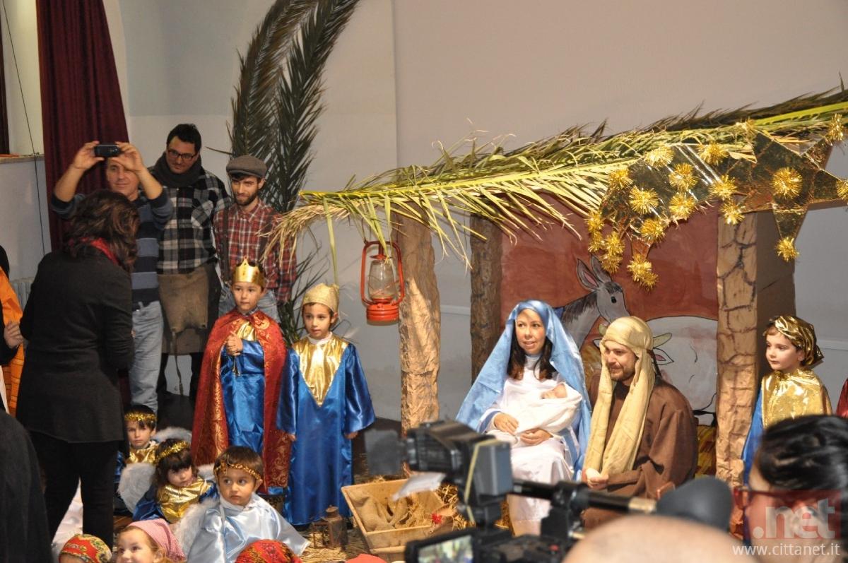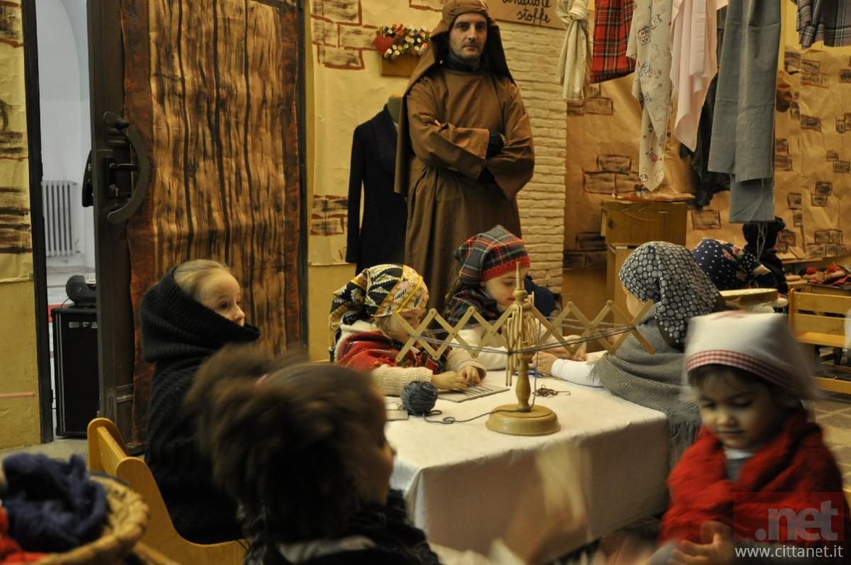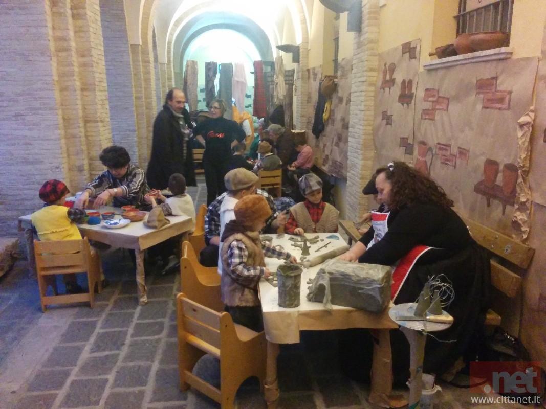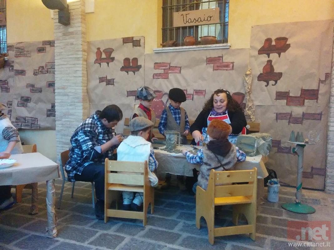 LANCIANO – La bottega dell’ortolano, quella della magliaia, del vasaio, del falegname, del fornaio: non mancava proprio niente nel presepe vivente inscenato da tre classi della Scuola dell’Infanzia Maria Vittoria per festeggiare il Natale di quest’anno.